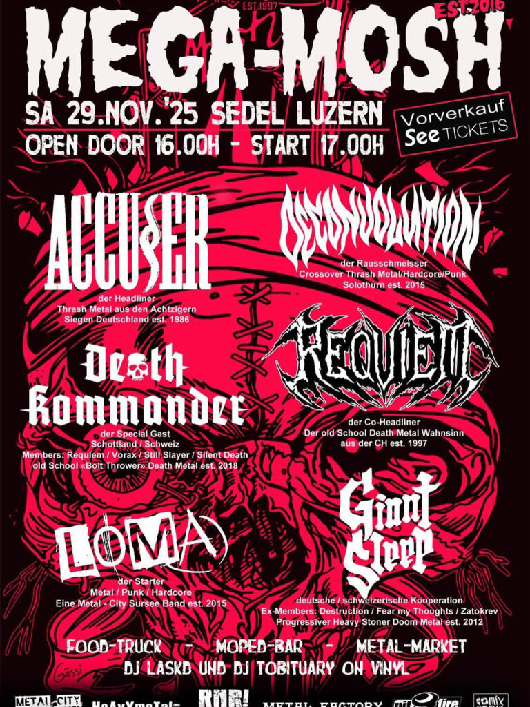 Sa 29. Nov. 2025 – MEGA-MOSH Sedel – Showtime 17:00Uhr…….